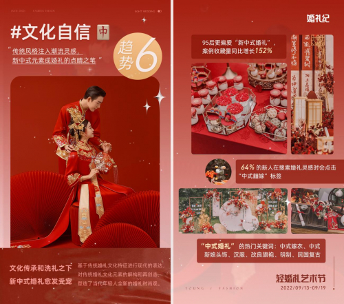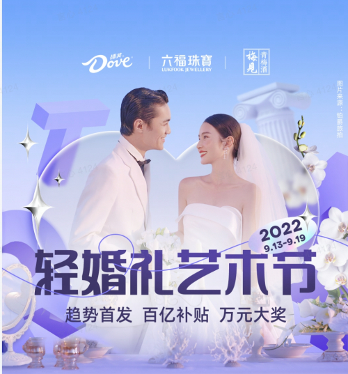 9月13日-9月19日,结婚行业头部平台婚礼纪正式启动2022轻婚礼纪艺术节,联动德芙、六福珠宝、梅见青梅酒三大品牌,聚焦平台旅拍及户外目的地婚礼类目,首提“轻婚礼”趋势概念,并发布六大轻婚礼年度新趋势,直击年轻人的结婚方式和喜好,为用户打造线上结婚消费狂欢盛宴 。