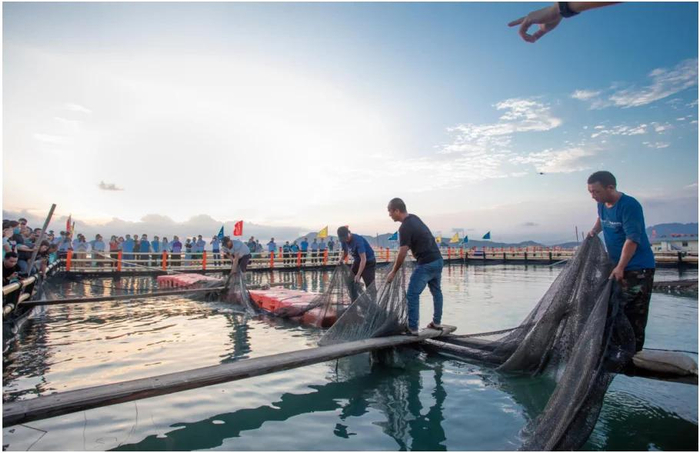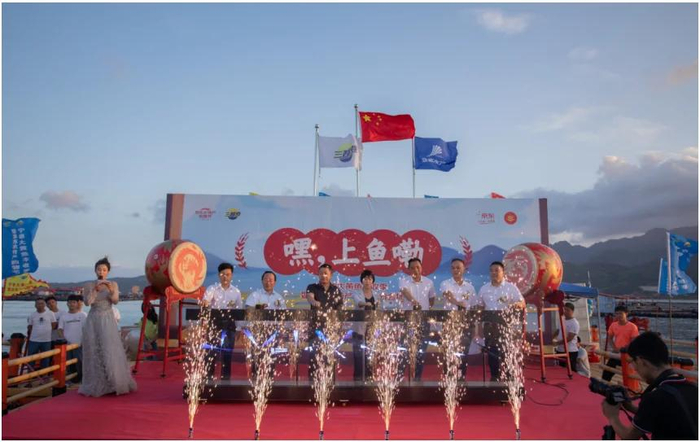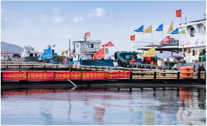 9月21日下午,2022中国农民丰收节——宁德大黄鱼捕捞季暨京东农特产购物节分会场活动,在宁德市蕉城区白基湾渔排正式拉开序幕。蕉城区副区长钟玲玲、蕉城区人大副主任吴国强等政府领导,中国大黄鱼之父刘家富、国家海水鱼产业技术体系首席专家关长涛、中国渔业协会大黄鱼分会会长尤信玲、宁德市渔业协会会长韩承义等行业专家和京东零售海产冷冻商品部总经理赵辉、宁德市金盛水产有限公司董事长尤信情等共同出席了此次活动。