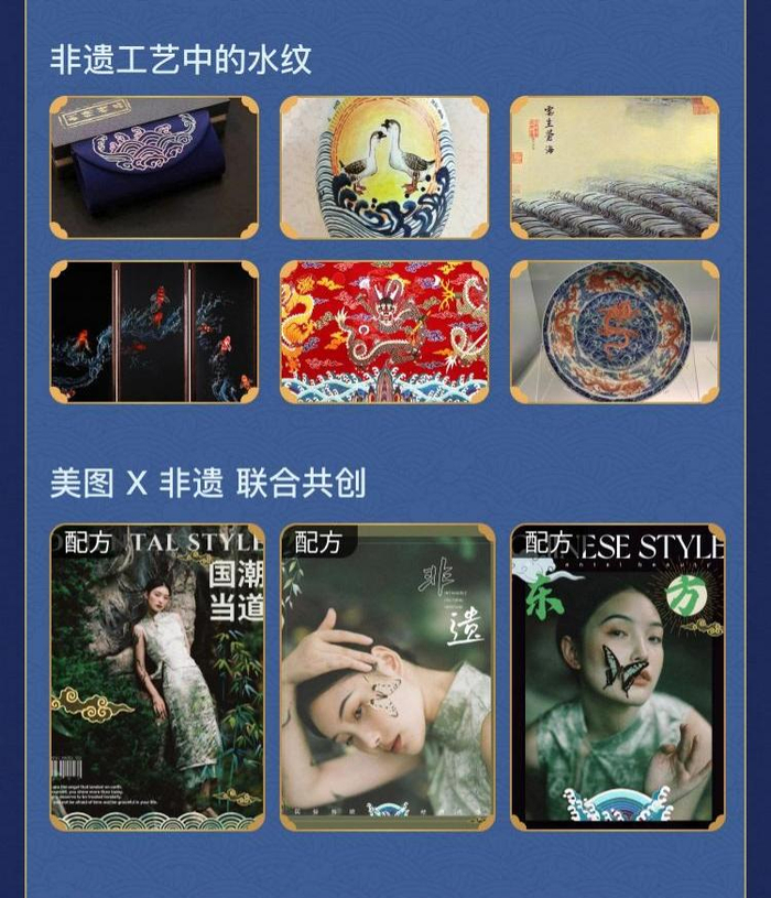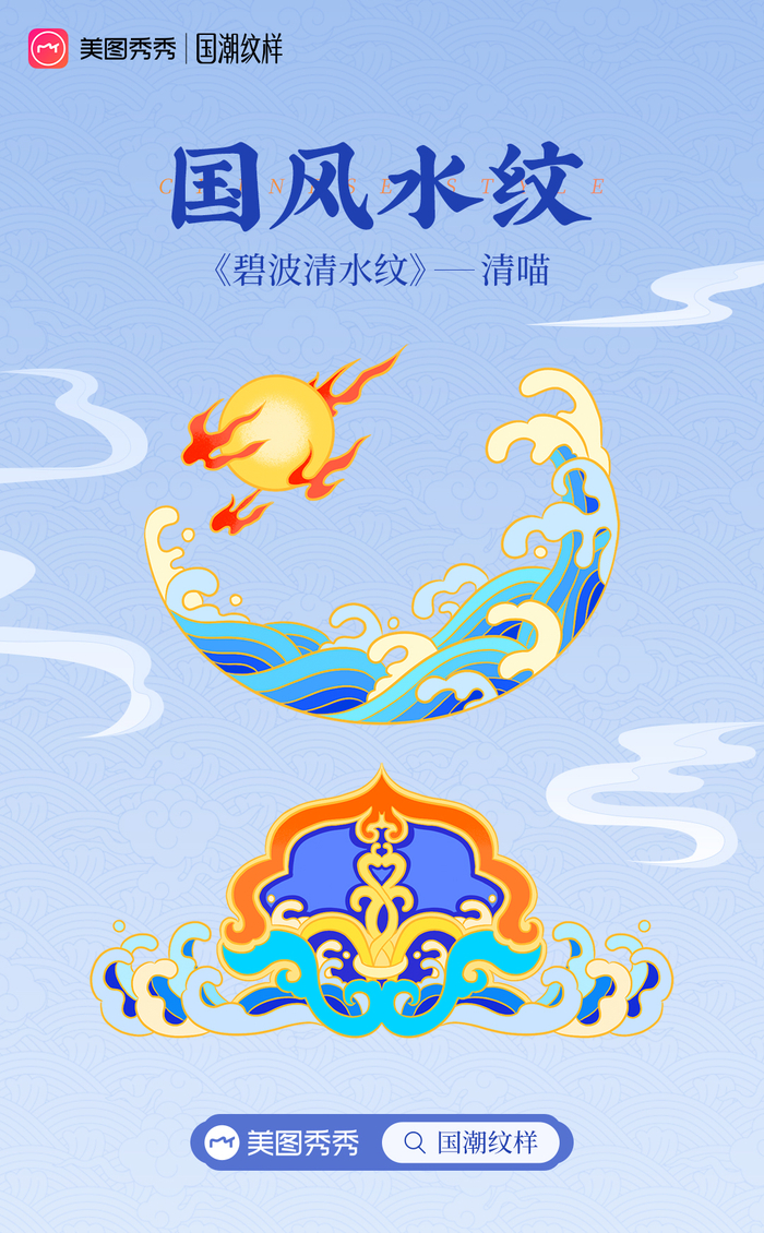 传播传统纹样的方式也可以很“新潮”。本次「国潮纹样」第二期新系列「跨越千年·水纹」企划是美图秀秀关于文化新解读的一次尝试,从历史中寻找支持和灵感,为美学开拓提供深厚的力量。