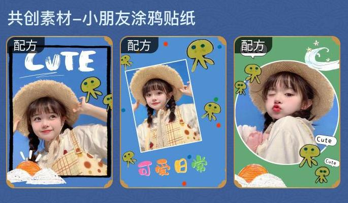 同时,“共创”理念在孩子身上也得到体现,美图秀秀以孩子们的涂鸦作品为灵感,制作了充满童心的贴纸素材。