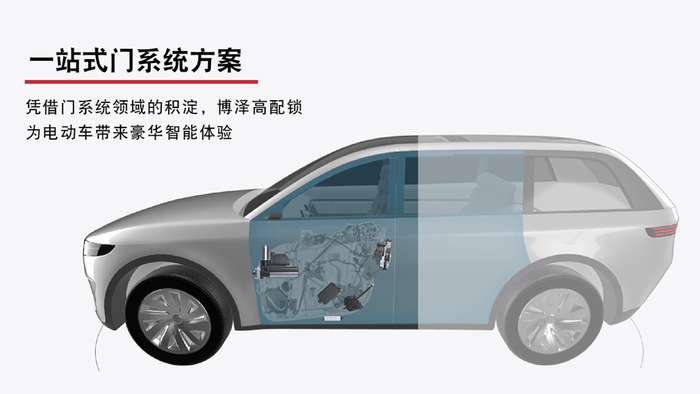 全平台产品均遵循紧凑的结构设计,容易布置,为车门设计带来更高灵活性。突出的声音表现,为终端消费者带来充满质感的开关门体验。