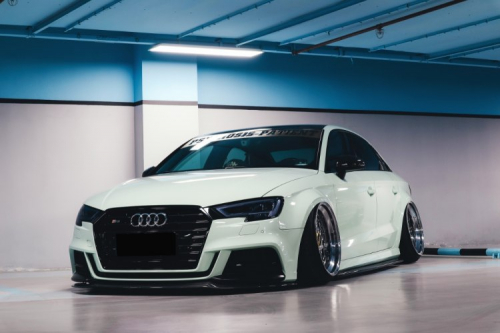 奥迪A3在改装圈子中并不少见,而在本次活动的个人赛道中,一辆2018款奥迪A3运动版更成为赛事“最靓的仔”。该车在原有基础上选择换用BBS轮毂,并量身打造手工宽体,加上冷色系汽车配色,极具辨识度,展现出独特的炫酷魅力气质,受到广大爱好者的一致好评。