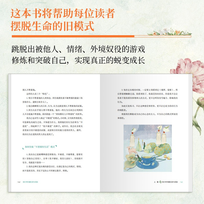张德芬通过写照自己的人生,而映出每位读者的内心世界。她沉静有力地剖析自身的婚恋经历、亲密和亲子关系,写尽内心暗流涌动的秘密。她以凤凰涅槃的姿态,不惧以身试炼,历经种种遗憾却依旧怀抱热爱。她直面过去的遭遇,将那种被燃烧、被一点点啃噬的最痛楚的感受,倾注笔端,最终去看见、去承认,去告诉自己和读者:亲爱的,外面没有别人。只有凭借自身的内在能量,才能活出想要的人生。
