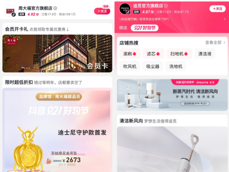通过抖音商城的多元玩法,无论是大品牌还是小品牌,都在其中找到了适合自己情况的运营和营销模式。以周大福为例,此次活动通过爆款话题、达人矩阵营销等内容场运营策略引导消费者进入抖音商城品牌馆,实现多重曝光并促成种草转化。在“抖音921好物节”期间,周大福抖音商城GMV超2000万,占品牌整体成交GMV 40%以上,品牌馆内累计销售全周期全品类排名TOP1。同时,周大福店铺新增会员环比上涨超600%,其中抖音商城成为品牌新客的重要来源,占比超过90%。而新锐品牌追觅则通过优选货盘商城专供、同步结合直播间、短视频、商城频道多链路引流的方式实现了业绩增长。