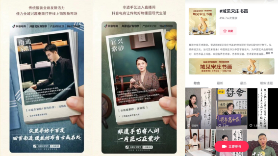这期间,涌现出众多产业带优秀商家和案例,他们的故事也是众多产业带商家的缩影。南通家纺产业带是江苏南通的名片,锦东家纺在传统模式中创新思维,探索出适合自身情况的运营和营销方式,让传统服装行业焕发出新活力;在宜兴紫砂产业带,珽珽紫砂通过还原古人饮茶场景,代入传承千年的紫砂文化,让非遗好物重焕光彩;以及宋庄书画产业带,为传统书画找到推广的新门路,依托抖音电商平台优势,让中华艺术瑰宝在线上被更多人看到。