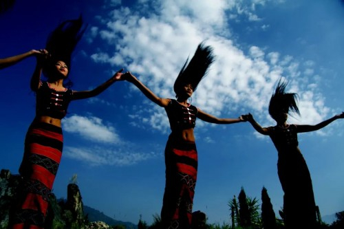 《佤族甩发舞》佤语称“稿西尾嘿”,流传在佤族地区女青年中的休闲娱乐舞蹈之一,主要分布于沧源佤族自治县。舞者们会把头发披散下来展示她们奔放狂野的魅力。