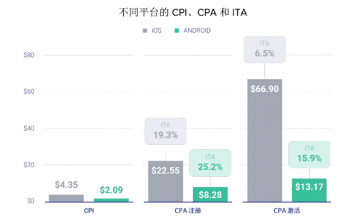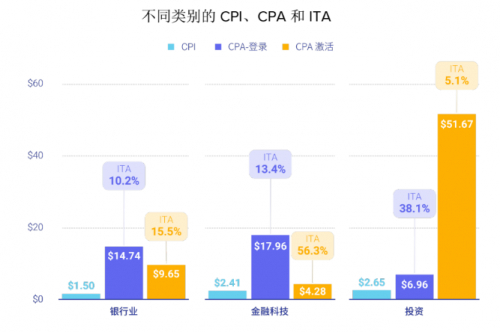 过去一年中,金融应用的平均每次注册成本(CPR)和每次激活成本(CPA)有所上涨,而从安装到激活(ITA)的转换率明显下降。