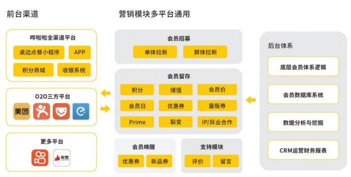 除此之外,哗啦啦还为古栾水镇的商户们搭建了切实有效的会员运营体系,基于哗啦啦线上营销以及智能储值等产品与功能模块,建立起了覆盖拉新、转化、复购的完整会员分级运营体系,加强了门店与会员全生命周期的互动与粘性,实现门店的持续营收。