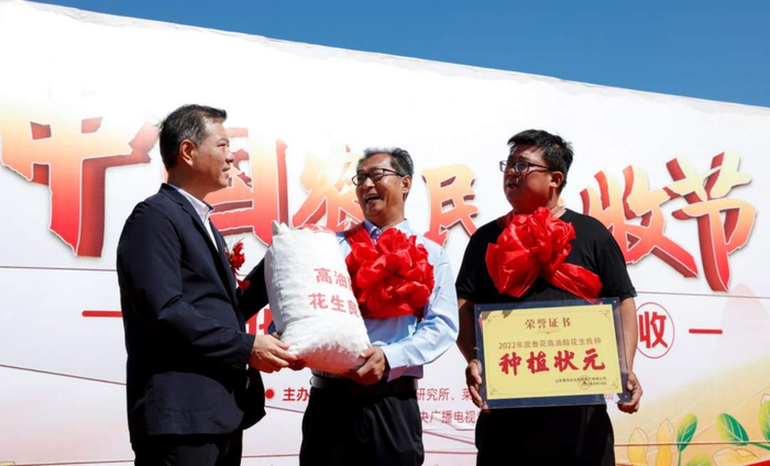 在第五届“中国农民丰收节”来临之际,鲁花集团(以下简称:鲁花)携手山东莱阳花生种植农户举行高油酸花生庆丰收仪式,十位种植户荣获种植状元称号,并获得由鲁花集团研发培育的新一代高油酸花生良种。此外,百余农户还将今年收获的第一批高油酸花生交付鲁花集团,共同谱写乡村振兴新篇章。