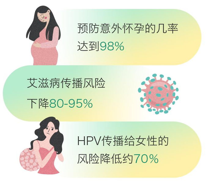一直以来,大众所熟知的避孕套,首要功能就是避免意外怀孕。它能让防止意外怀孕的几率达到98%。而正如避孕套的另外一个名字——安全套,它的另一个重要作用是防止多种性病传播。白皮书中透露,使用避孕套可使艾滋病的传播风险降低约80-95%,使人类乳突病毒(HPV)传播给女性的风险降低约70%。