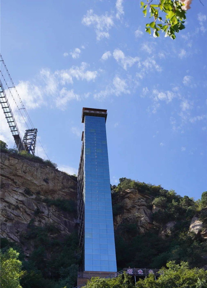 为缓解游客的身体疲劳,景区专门为游客建造了代步电梯,28秒直接登顶玻璃天桥,如同擎天云梯。既刺激,又能欣赏美景,悬崖峭壁,蔚为壮观的清潭飞瀑尽在脚下。