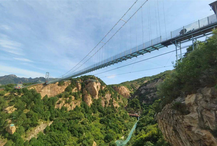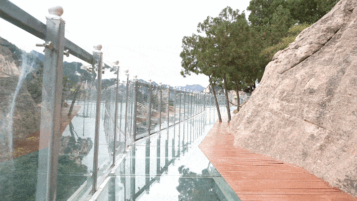 阳光明媚之时,遥望玻璃天桥,晶莹剔透、熠熠生辉,宛若天际的一条银河,是美学,更是绝学。漫步天桥,会有一种鱼在水中游,人在空中走的感觉;耳边还时不时传来逼真的玻璃碎裂的音效,心跳瞬间会漏掉几拍,倘若你没有几分胆量,是很难走着下来的。