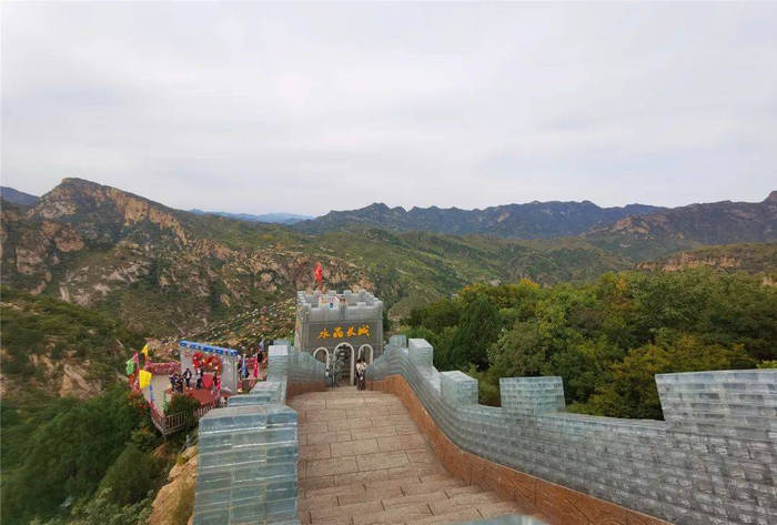古有秦始皇修万里长城,今有清凉谷造水晶长城。远远望去,宛如一条水晶长龙,蜿蜒盘旋,气势磅礴,水晶烽火台一个连一个,在阳光下晶莹剔透,熠熠生辉。在举国欢庆之日登水晶长城为祖国祈福,当夜幕降临星河璀璨、灯火辉煌,在长城之巅将今日繁茂盛景尽收眼底。