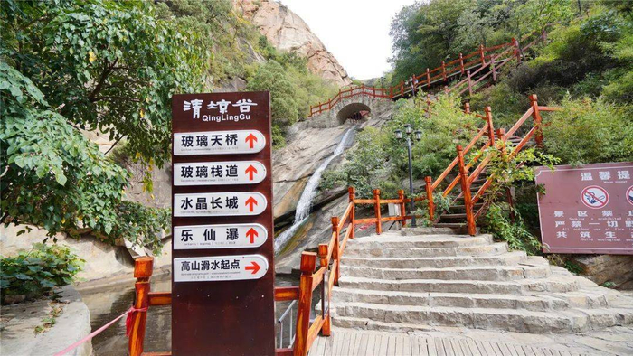 清凉谷玻璃栈道是条看着让人腿软的 “天空之路”,漫步在被誉为“树尖上的玻璃栈道”上,如“轻功”上身,远可感受远方五彩斑斓,层林尽染;近可伸手抚摸清凉谷秋的柔润,聆听翻飞的落叶,深呼天然氧吧的空气,神清气爽。