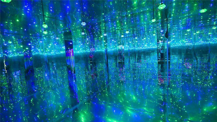 步入玻璃水晶迷宫,像是来到了爱丽丝的梦幻世界,美妙的色彩、动感的光效,令人着迷;璀璨的星空,流光溢彩,令人眼花缭乱。