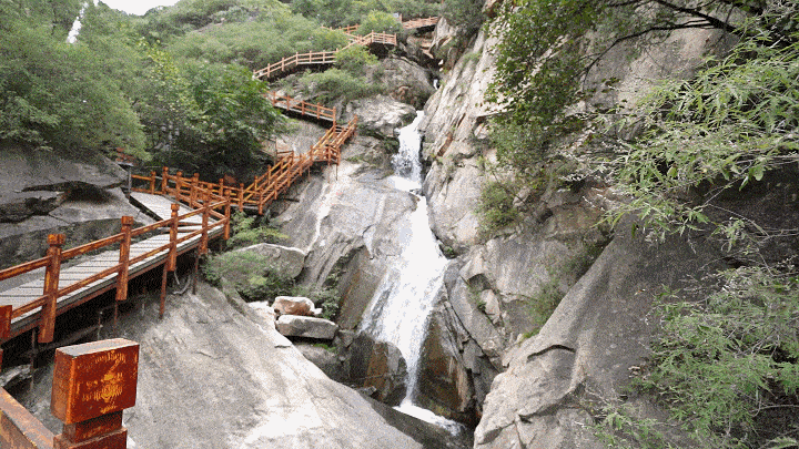 当你拾阶而上,会邂逅两湖五瀑十三潭。它们形状各异,有的形如杯子,有的状若饭勺,让你应接不暇。当你靠近,水雾蒸腾,仙气飘飘,深潭咕咚处,凉气一丝一丝扩向四周,数米以外都可以感到丝丝透心凉。