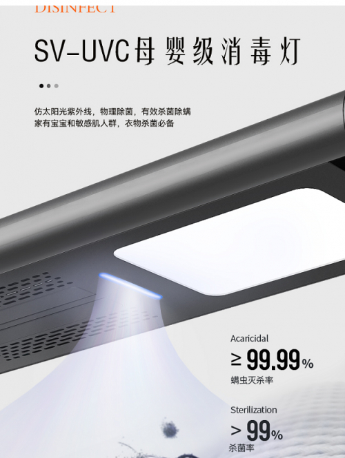 配置10W双LED照明灯,确保即便挂满衣服,阳台光线也不受阻挡,摆脱闷重压抑感,同时,3小时智能关闭功能让智能更绿色环保。独配SV-UVC母婴级消毒灯,仿太阳光紫外线物理杀菌,螨虫灭杀率与杀菌率分别高达99.99%和99%,无惧螨虫、大肠杆菌、金黄色葡萄球菌、白色念珠菌威胁,呵护宝宝和敏感肌家人健康。