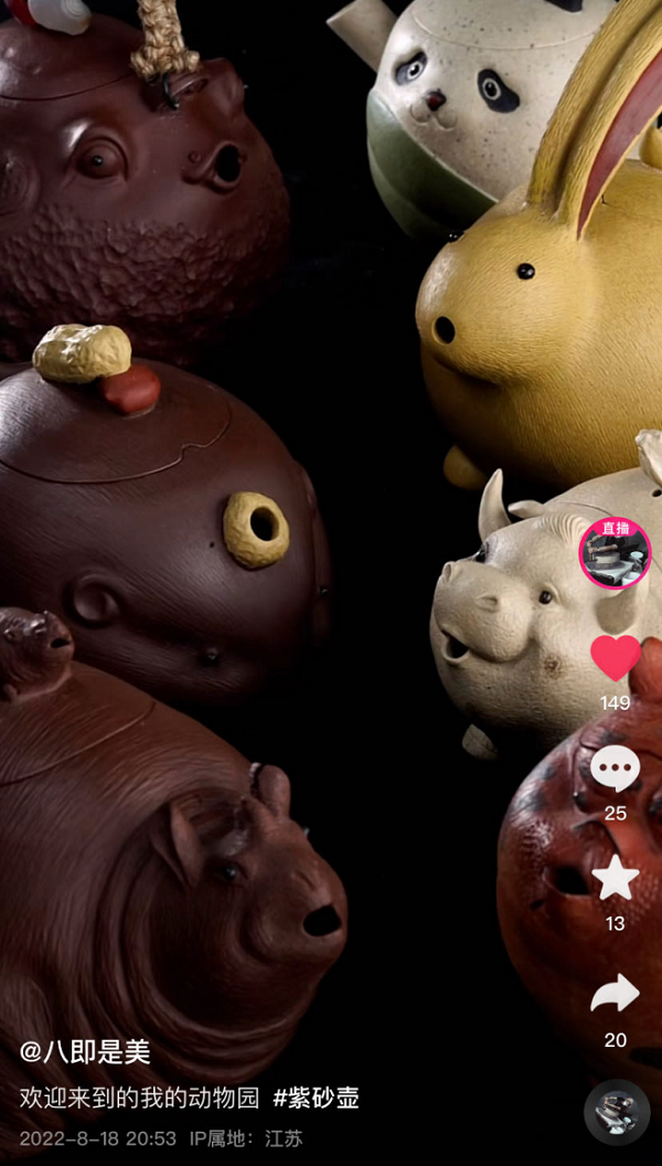 不过由于抖音是一个用户基数巨大的平台,加上抖音电商的兴起,更多的人在这里买了第一把壶,开始关注、了解紫砂文化。