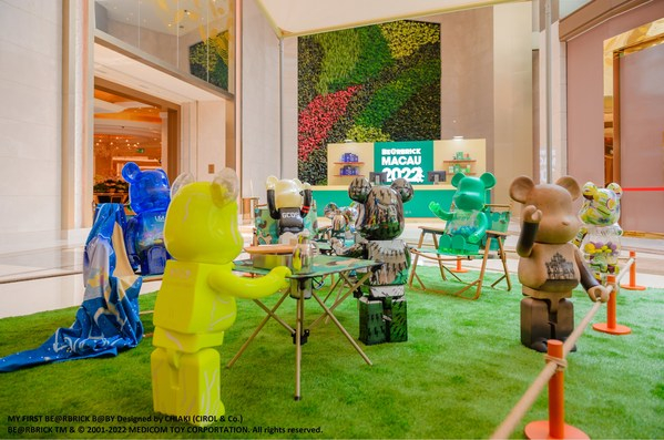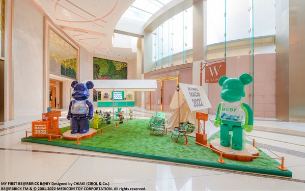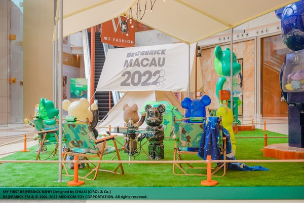 是次BE@RBRICKMACAU2022限定展以“澳门银河”翡翠大堂作主展区,展出高达2.1米的WF Fashion x MY FIRST BE@RBRICK B@BY澳门限定“千秋”以及UM Junior x BE@RBRICK 3000%艺术装置。现场并设有大型草坪、帐篷等,让宾客可以在休闲的环境下轻松打卡今季最“潮玩”的露营照。