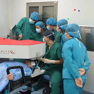 医生使用强生眼力健“Catalys白力士”飞秒激光白内障手术设备为患者手术