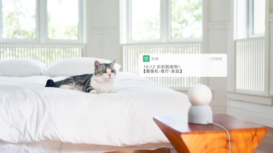 对于家里有萌宠的用户来说,这款产品也是个不错的选择。AI增强版支持“宠物识别”,当摄像机识别到画面中有宠物时,会主动向用户发送通知;如果主人设置了床铺、阳台等区域看护位置,当宠物出现在这些重点区域,主人就可以及时知晓,且远程喊话萌宠。