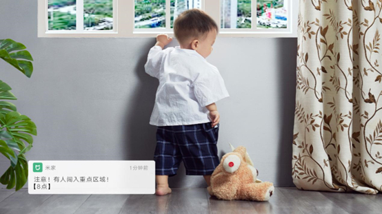 智能“宝宝看护”的使用场景,是AI增强版的特色AI功能之一。宝爸宝妈可以将家中具体区域设置为重点看护范围,为宝宝设置“电子围栏”。例如,当宝宝睡眠区域,检测到宝宝频繁动作或有哭声时,摄像机会立刻发送提醒至宝爸宝妈的手机。又或者在阳台、厨房等指定区域检测到有宝宝活动时,也会给宝爸宝妈们推送通知,及时避免宝宝发生危险情况。