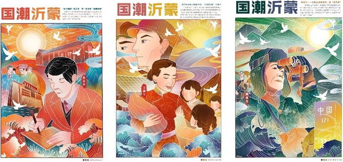 本作品以描绘沂蒙故事为切入点,采用国潮风格的插画形式,将沂蒙精神与现代元素、传统花纹相结合,生动体现沂蒙精神相关人物、事件和精神的内涵,具有良好的传播性。