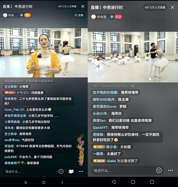 冯英介绍,非常感谢广大网友的支持和喜爱,此次直播首秀对中芭来说是一个美好开端。有了这次直播经验,中央芭蕾舞团还计划以后在抖音每月开展2-3次直播,带大家进一步了解芭蕾文化,一起感受艺术的魅力。