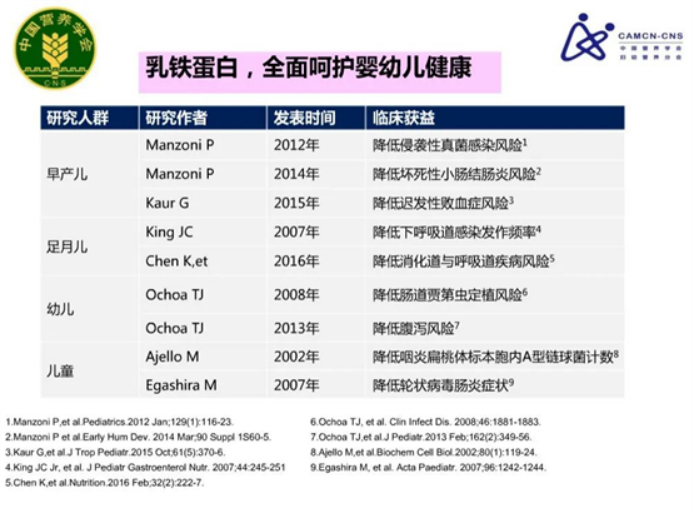 NO.4 乳铁蛋白与婴幼儿、儿童健康效应的研究证据