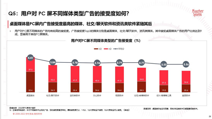 在PC屏端众多广告类型中,PC桌面媒体(指浏览器或系统安全类的软件或桌面壁纸软件)对用户打扰度低,形式更加原生,素材展现形式更加精美多元,成为用户接受度最高的PC屏内广告形式。