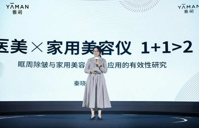 对于医美项目联合家用美容仪使用的可能性、方法和效果,雅萌联合德医皮肤,在全国3家机构陆续开展关于「医美×家用美容仪]的联合应用探索。德医皮肤联合创始人、北京大学皮肤学博士秦晓蕾在此次峰会现场分享了《眶周除皱项目与家用美容仪联合应用的有效性研究》阶段性成果——受试者在进行A型肉毒毒素项目后使用雅萌ACE五代射频仪后,能够起到部位互补、技术互补、功效互补的作用,整体对减少眼周细纹、眉间纹、眼周动态纹,以及提亮眼周肤色等均具有改善效果,并且受试者对使用感受的满意度高,均未出现任何不良反应。