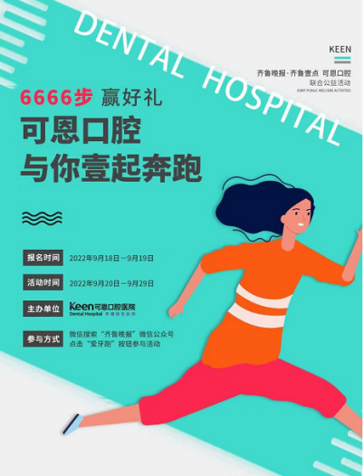 深耕口腔服务行业,可恩口腔不忘初心,致力于改善身边人的口腔健康状况,力求打造成为备受尊敬的行业品牌。多年来,可恩口腔投身于口腔公益事业,通过健康口腔科普讲座、口腔咨询、义务口腔检查等多种形式,传递“口腔健康,全身健康”的理念,以实际行动为提高大众的口腔保健意识贡献应有的力量。此次,可恩口腔与齐鲁壹点“壹起奔跑”公益牵手,联合发起“线上爱牙跑”活动,是可恩口腔助力“健康口腔”和“健康中国”行动的又一体现,在参与活动的过程中,市民朋友既可通过慢跑、步行等有氧运动提升身体素质,也可在活动界面了解爱牙小知识,提高对口腔健康的重视程度。