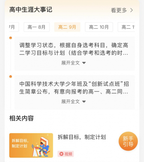 通过这样分省分年级的方式,“高中生涯大事记”能为有需要的学生针对性推荐对应内容,帮助高中学子更好地度过高中每个阶段,做好高中的每个选择,在追逐梦想的道路上不再迷茫。