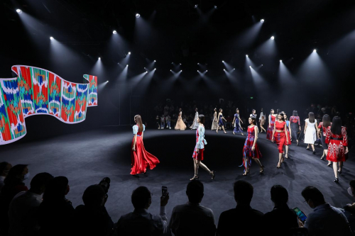 本次活动是在北京市委宣传部的指导下,由北京市援疆和田指挥部联合中共和田市委、和田市政府主办发起,利用北京时装周平台专业资源优势,助力和田市艾德莱斯设计创新、品牌培育、产业升级的积极探索,京和两地联袂打造艾德莱斯焕新蜕变之旅的高光时刻。南疆大漠,广袤草场,首都金街,时尚T台,艾德莱斯在不同风格间自如切换,诠释着非遗时尚的厚重历史与活力新生。