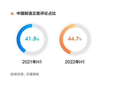 巨量算数数据显示,在抖音平台,用户对中国制造相关内容的关注和兴趣均呈现上扬态势,同时,对中国制造品牌的正面评论占比也由2021年的41.5%,提升至2022年上半年的44.7%。正面口碑的扩大,表明用户对中国制造品牌的好感度进一步提升。
