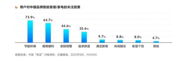 随着产品技术迭代,技术驱动智能家居/家电逐步实现智能化,用户对中国品牌智能家居/家电的购买因素中,更偏向于智能、品质、服务等因素。中国品牌以科技助力,实现智能化的转型,真正做到中国品牌服务中国家庭。