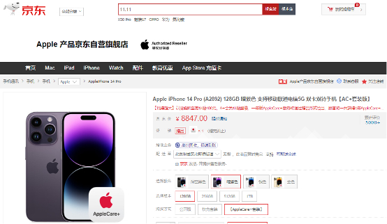 一年不限次官方意外保修 每晚19点来京东抢鲜入手iPhone 14 Pro AppleCare+套装
