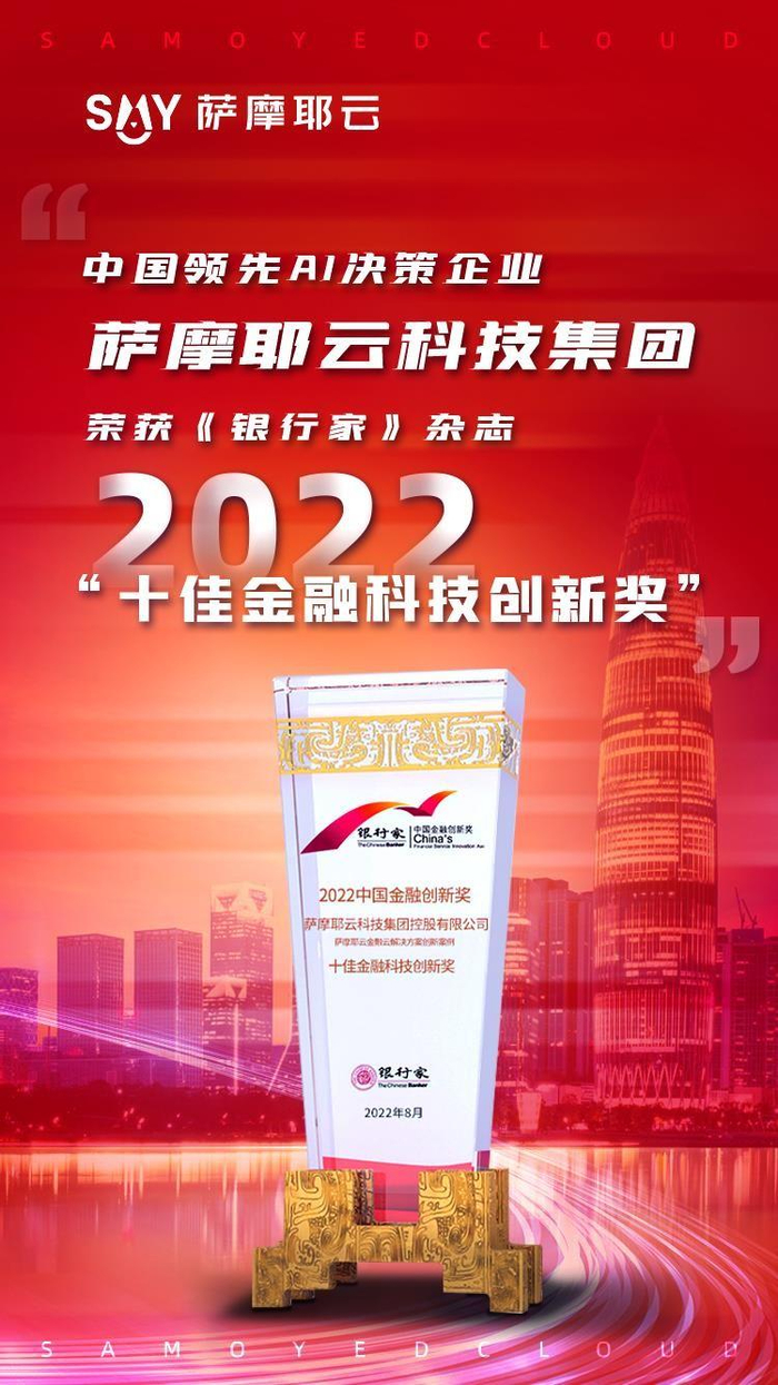 9月 26 日,由《银行家》杂志社组织的“中国金融创新论坛暨中国金融创新奖成果发布会”在线上举办。凭借领先科技创新能力和应用优势,中国领先AI决策企业萨摩耶云科技集团荣获2022“十佳金融科技创新奖”大奖,与阿里云、光大科技、腾讯云、金融壹账通、兴业数金、民生科技等企业同获此殊荣,硬核科创实力再次得到权威认可。