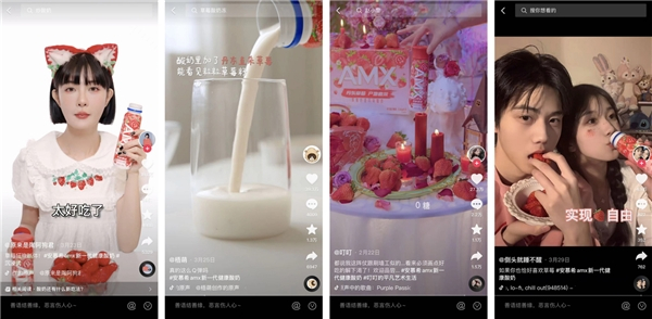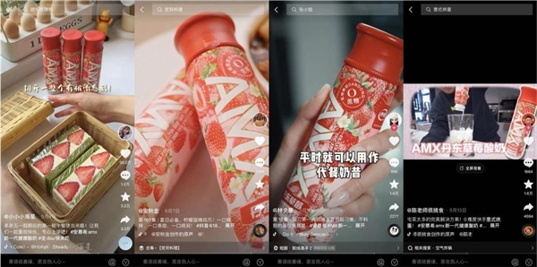 • 好的达人内容是新品走进用户内心的介质。在达人内容策略上,伊利运用巨量云图洞察品牌人群偏好,以个性化、多圈层内容创意丰富品牌内涵。比如配合平台生活美食相关的IP,形成内容破圈,提升品牌主张,帮助安慕希AMX丹东草莓酸奶新品积累用户谈资。
