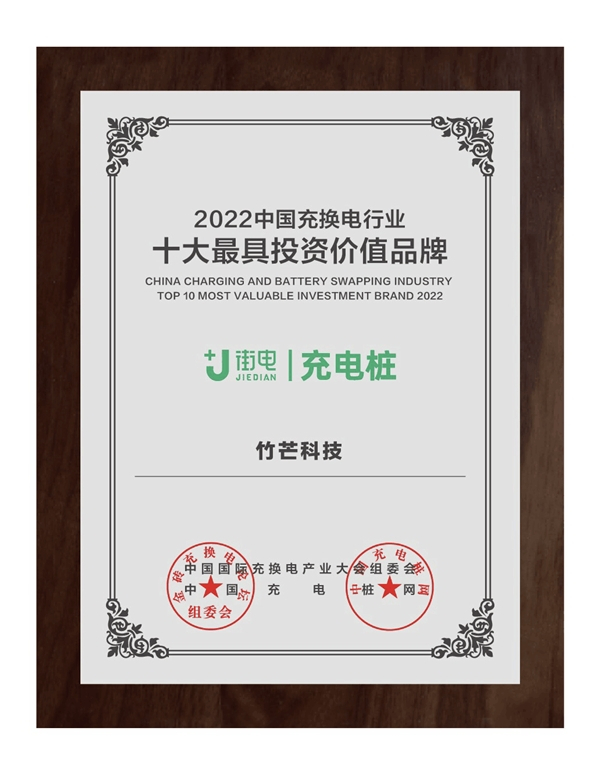 此次竹芒科技获颁“2022中国充换电行业十大最具投资价值品牌”和“2022中国十大智能安全充电桩品牌”双料奖项,也彰显了行业对竹芒在充电桩领域市场影响力及新商业模式的高度认可与肯定。