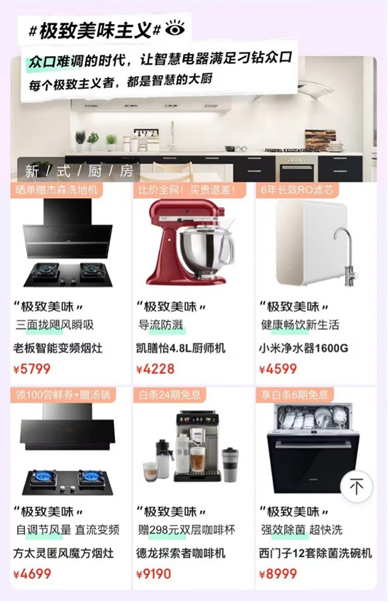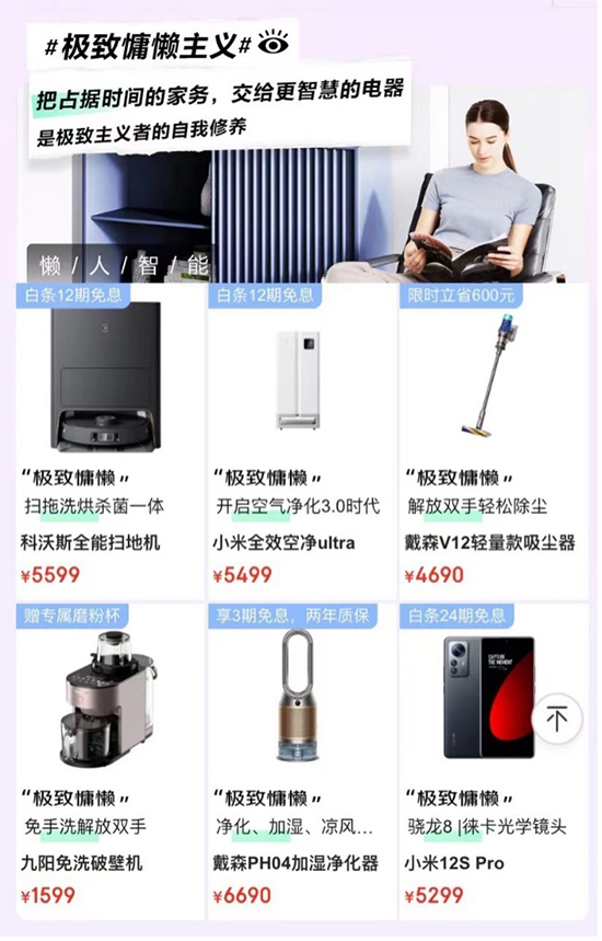 在用户消费观念的改变下,仅满足基础功能已不能满足用户对电器的需求,能满足用户对品质生活追求的趋势电器逐渐成为用户首选。京东针对用户使用电器场景,上线了极致电器新品大赏活动,涵盖家电、电脑数码、手机三大品类新品好物,除了可享产品优惠外,还可享至高24期免息。消费者只需在京东搜索“极致生活主义”即可进入活动会场,挑选适合自己的电器好物。