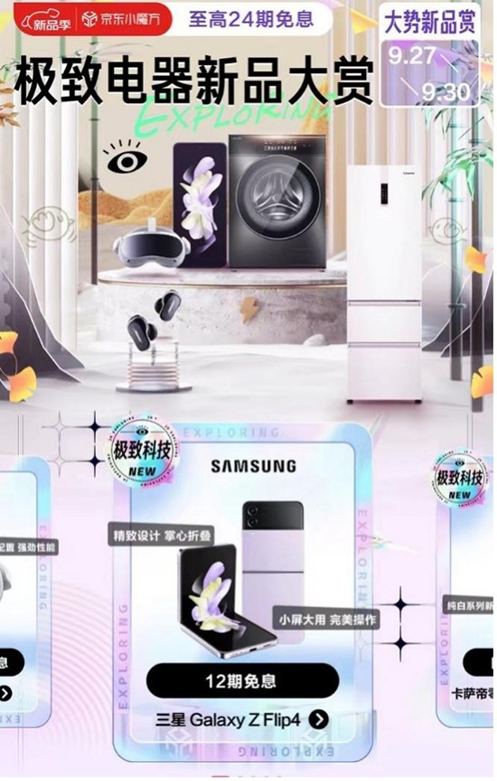 三星Galaxy Z Flip4采用上下折叠形态,重量只有187g,小巧方便携带,内部配备6.7英寸可折叠屏幕,外屏采用1.9英寸屏幕,能够拨打电话、回复短信以及使用付款码进行支付等等,京东购买可享12期免息。卡萨帝零距离自由嵌入式冰箱,由于改变了散热位置和门体结构,零嵌冰箱能紧贴橱柜放置,节省了厨房空间;使用上,因为去掉了冰箱两侧的散热缝,为用户减少了卫生死角。同时,保鲜层面,能够实现-30℃深冷智冻,以极地般低温保鲜出极为新鲜的食材,京东限时立减1000元,到手价7999元。Bose无线消噪耳塞、COLMO星辰洗烘一体机、Pico 4 VR一体机等也有超值优惠哦。