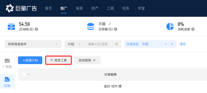 通关入口一:巨量广告 —> 推广 —> 投放工具