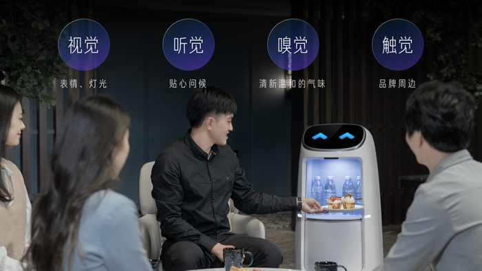 深夜,当你拖着疲惫的身体来到酒店,有这么一位机器人,TA会热情主动的迎接你,并为你递上40°的暖心水,引导你快速办理入住;节假日,当你带着小孩热热闹闹来度假,TA能立马与孩子们打成一片,解答他们的十万个为什么,让你身心立马得到放松;当你不想被人打扰时,TA也能随时响应你的购物需求,送货上门保护你的隐私。