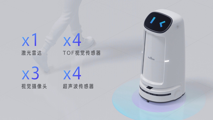 通行时,为了让行人感到安全舒适,一直在持续不断打磨优化导航算法。在距离行人适当距离,能主动降低速度,微笑打招呼。与行人面对面通行时,能保持合适的友好距离,如果通行宽度不够时,停下来让行人先过,避免行人刻意避让机器人。