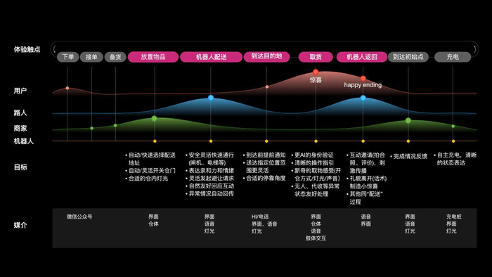 一项服务的好坏,不能仅仅只满足了服务的接收方,还应该关注众多服务的参与者。通过梳理用户体验地图,将机器人配送服务划分为3类用户10类触点来细化设计和管理,结合AI技术,创造更加美好的人机交互体验。