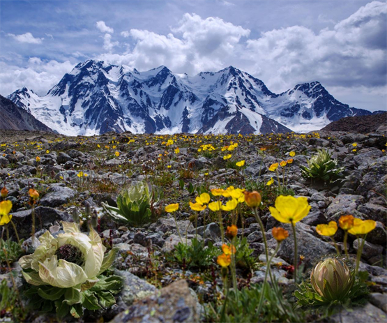 新疆天山,是全球七大山系之一天山山脉的主体部分。天山全长2500km,在我国境内,横跨新疆。天山之高,其平均海拔约4000m,拦截了到达新疆上空的大西洋和北冰洋等较湿润的大气环流,形成了干旱区的巨大“湿岛”,为植物生长提供了良好的降水环境。在天山之上,高山区域的植被主要由矮茎的多年生草本植物、平卧的矮灌木、地衣和苔藓植物组成。由于地质抬升运动而形成的山地系统内部特有的生物交流隔离屏障和迁移通道,使得高山区域拥有众多植物种类和极具价值的植物资源,天山雪莲便是屹立于巍巍天山的独特存在。