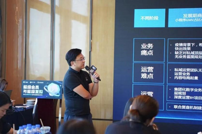 第二个:其实私域并不是所有的用户都适合拉进来,我的理解是私域适合服务高价值用户。高价值用户在私域才能交互起来,当然如果说今天我们不谈鞋服,我们谈美妆、谈食品之类的极高复购的产品,那是可以私域里面做交易的。”百应科技零售VP潘超在现场分享中表示。