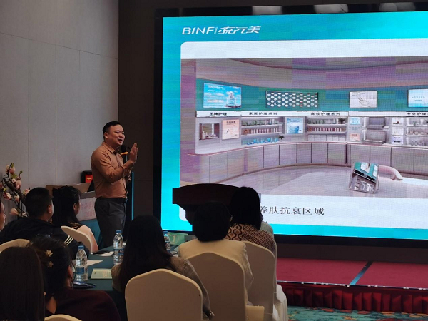 随后,市场中心总监陈总当下整个轻美容行业的市场趋势进行深度分析,帮助现场嘉宾更深入了解流行美24年的品牌背景,并阐述以如何以高规格品牌思维和顶层商业布局+超级营销打法,帮助大家更好去抢占美业市场创业新赛道。
