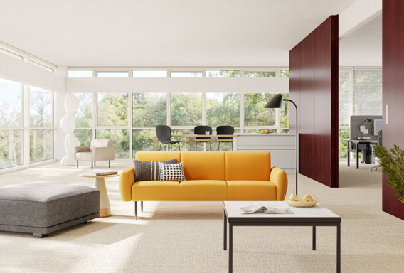 一个多功能空间可赋予用户选择工作方式和工作地点的自由。休闲沙发自成单元,供人们休闲或洽谈。花舞内秀款锋芒藏于内,绵柔显于外,内折扶手就像一件艺术品,以高颜值设计彰显出空间的美感,激发办公新灵感。